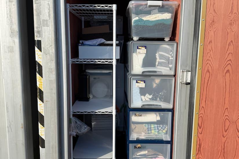 主に母が一人暮らしで利用していた、洗濯機やテレビなどの家電、収納家具、衣類、食器、照明などを保管しています。