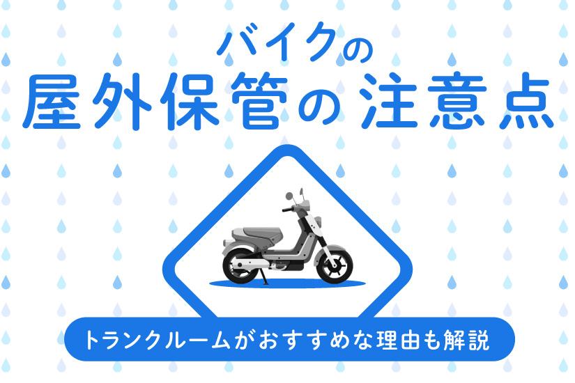 この記事では、バイクを屋外で保管する際にしておきたい対策について解説します。バイクの保管に屋外型トランクルームがおすすめな理由についても解説しているので、ぜひご参照ください。