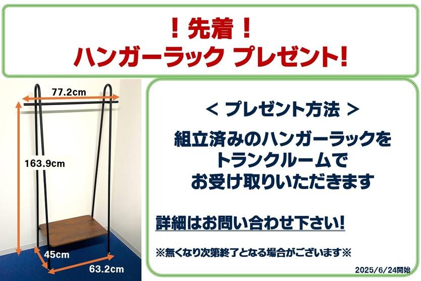 <対象:2025年11月末日までに新規申込みで6ヶ月以上ご利用の方>ご契約当月賃料と翌3ヶ月の賃料が半額になります ※トランクルーム対象