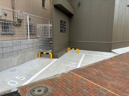 24時間出し入れ可能な屋外バイク駐車場です。 防犯カメラや屋外照明が設置されております。また、盗難防止用にタイヤチェーンを取り付けるポールを設置しておりますので、安心してご利用いただけます。