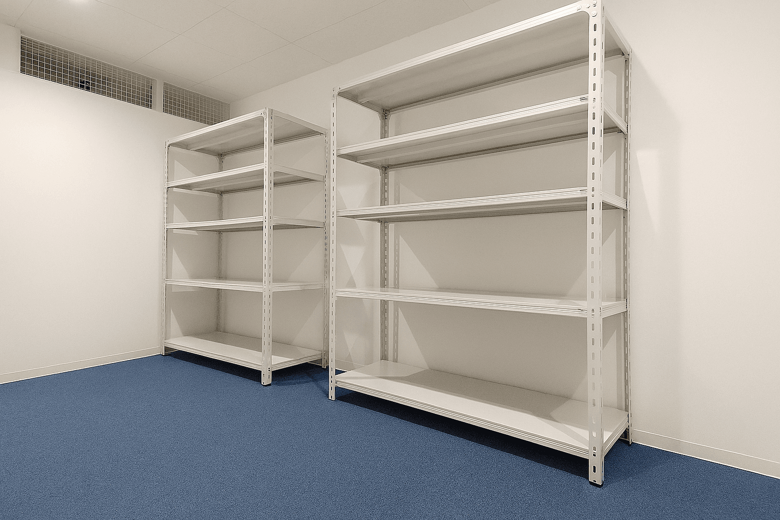 一部、室内にスチールラックを設置しました!