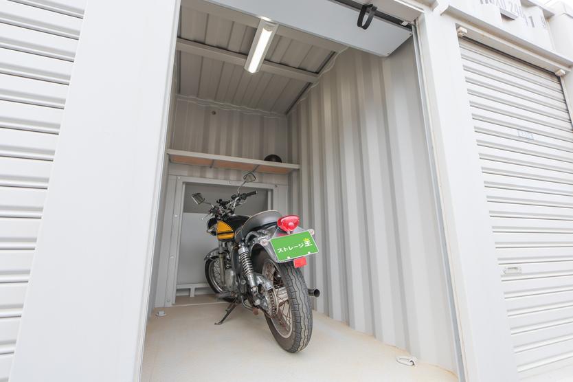 あなたの大切なバイクを風雨から守ります。 スロープは軽く脱着式のため、かんたんにバイクを収納することが出来ます。 店舗内照明や室内照明も設置されており夜間でも安全に明るくご利用いただけます。